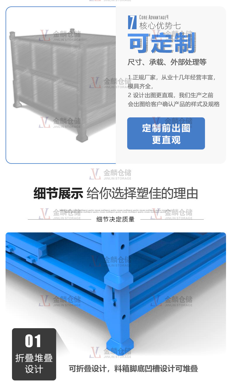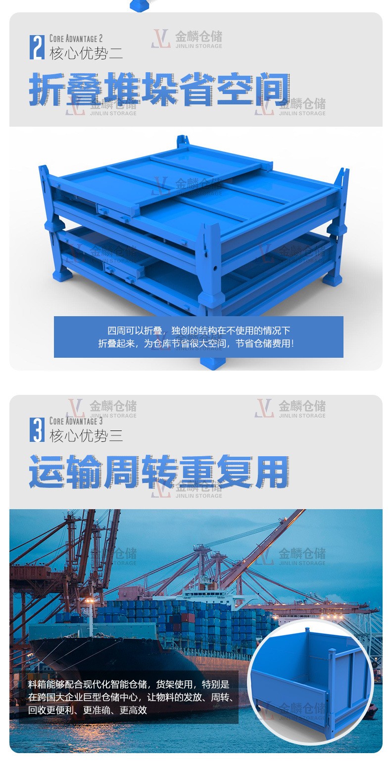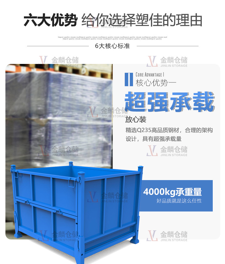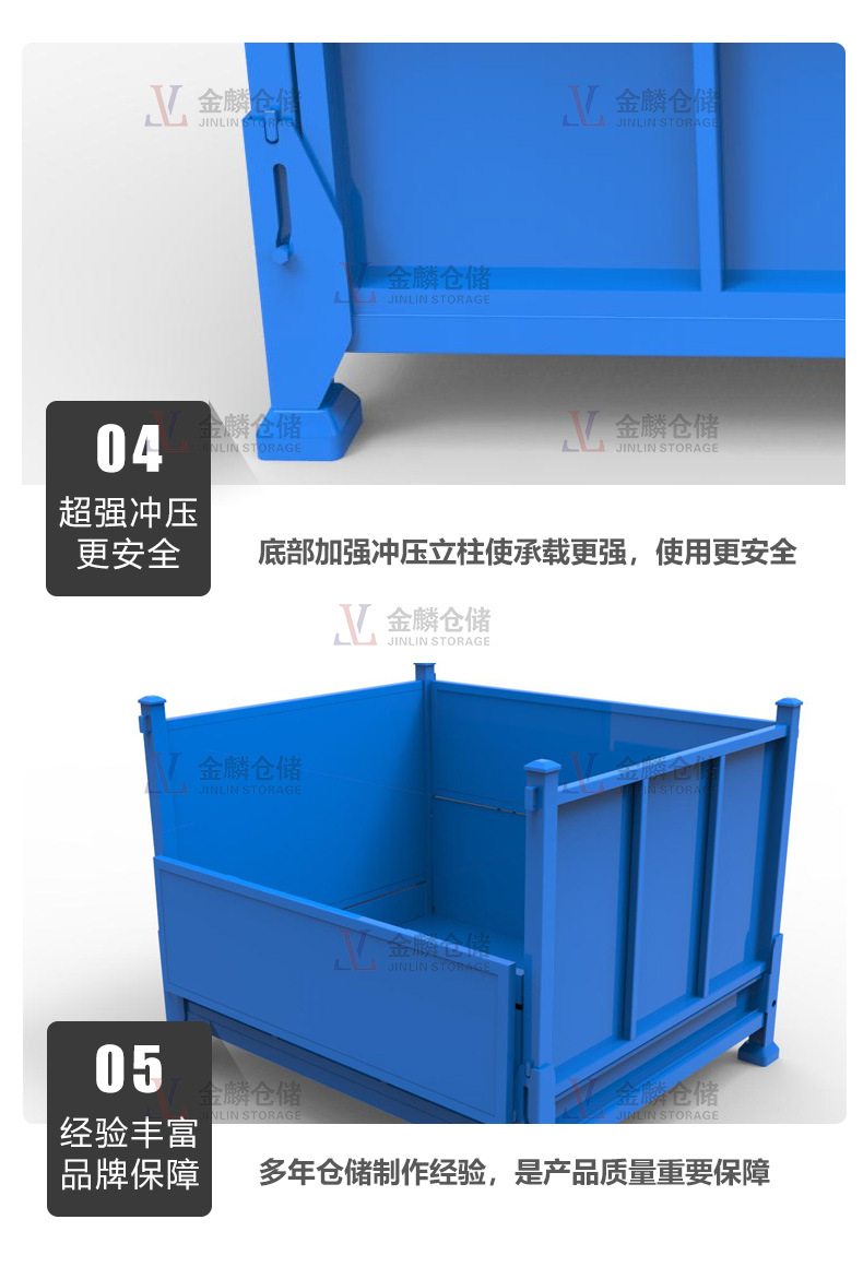 5.金屬輔強(qiáng)結(jié)構(gòu)保證鐵箱折疊后相互之間穩(wěn)定的堆垛
