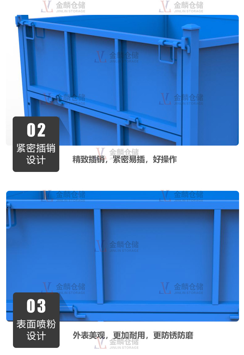 2.特殊腳部結(jié)構(gòu),可使鐵箱自身堆高穩(wěn)定